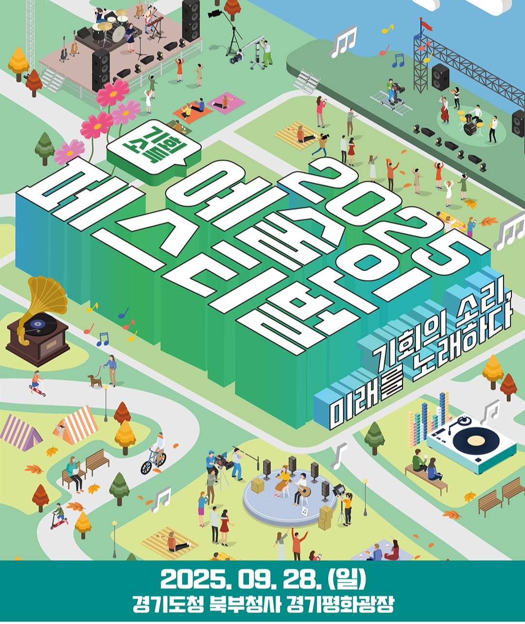 2025년 기회소득 예술인 페스티벌의 두 번째 공연이 오는 9월 28일(일) 오후 3시부터 4시 30분까지 의정부 경기도청 북부청사 경기평화광장에서 개최됩니다.