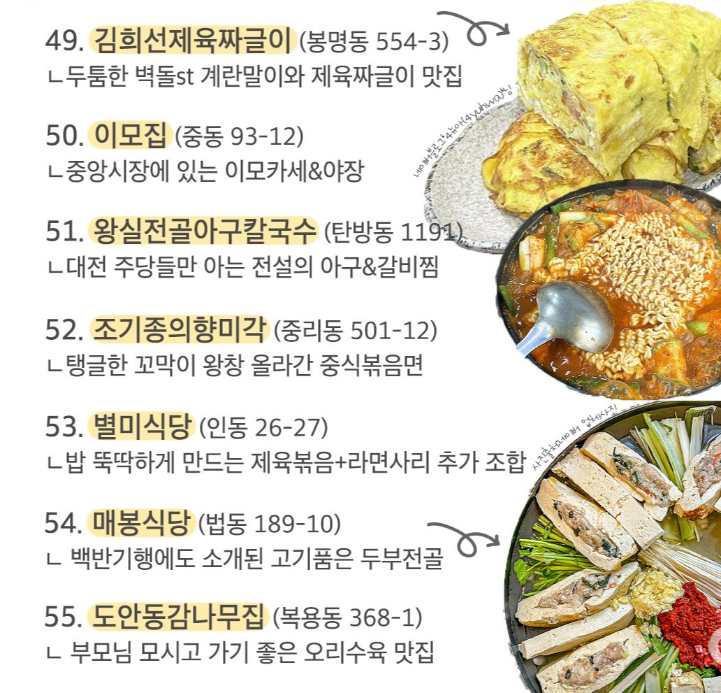 대전에서 꼭! 가야하는 맛집 55곳