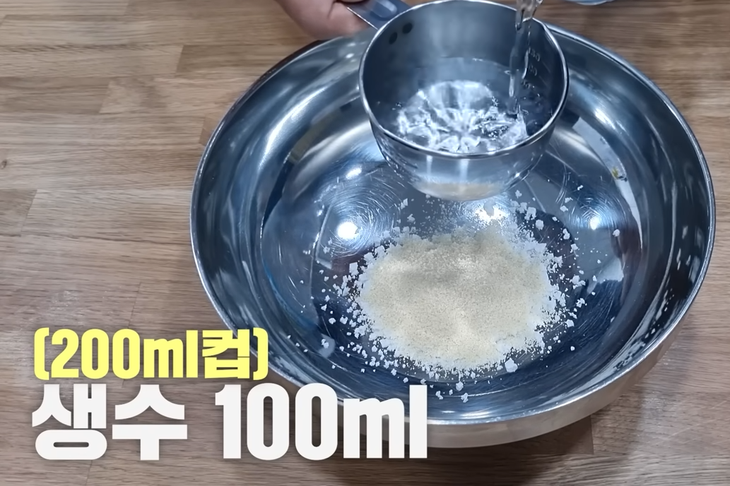 소금1스푼, 설탕2스푼, 생수100ml, 제로사이다200ml, 식초 3스푼, 연겨자 5cm