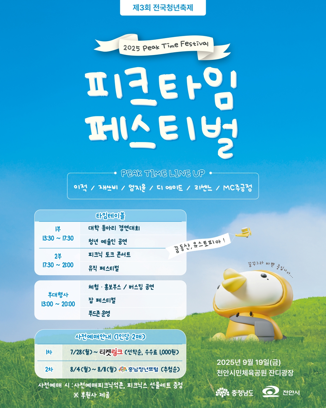 - 2차 사전예매는 **8월 4일(월)부터 8월 11일(월)**까지, 1,000명을 대상으로 충남청년포털을 통해 추첨 방식으로 진행됩니다. 당첨자에게는 피크닉 굿즈가 함께 제공됩니다.