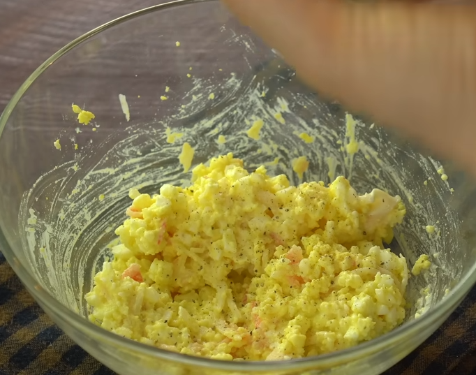 후추 약간을 넣고 섞어주면 계란샐러드도 순식간에 완성입니다.