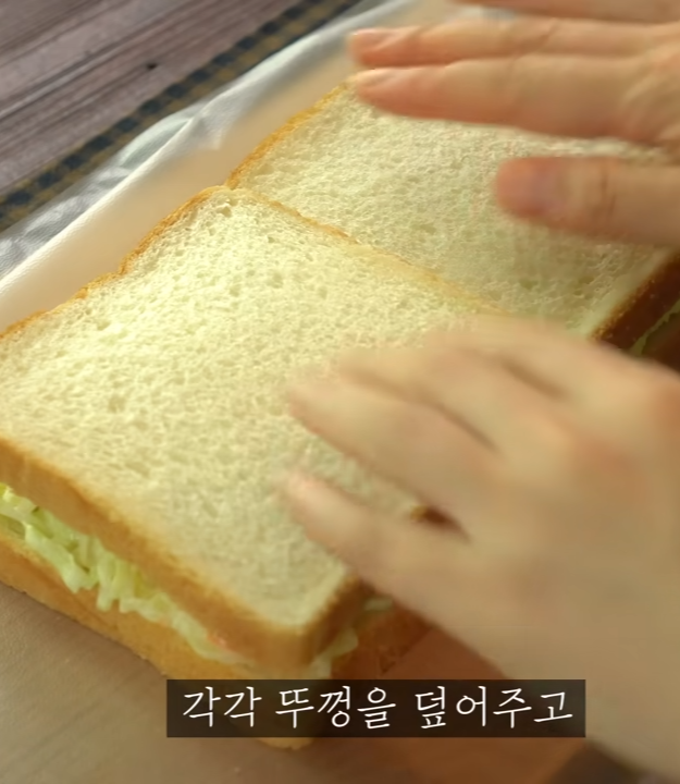 저는 얇은 빵이 없어서 아쉬운대로 두꺼운 빵으로 했어요.