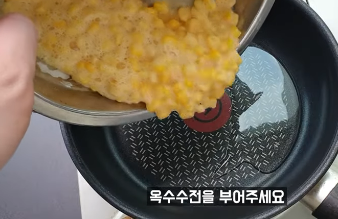 이렇게 준비된 옥수수 배합물을 적당한 프라이팬에 식용유를 둘러 주어 약불에 옥수수전을 맛있게 구워주세요.