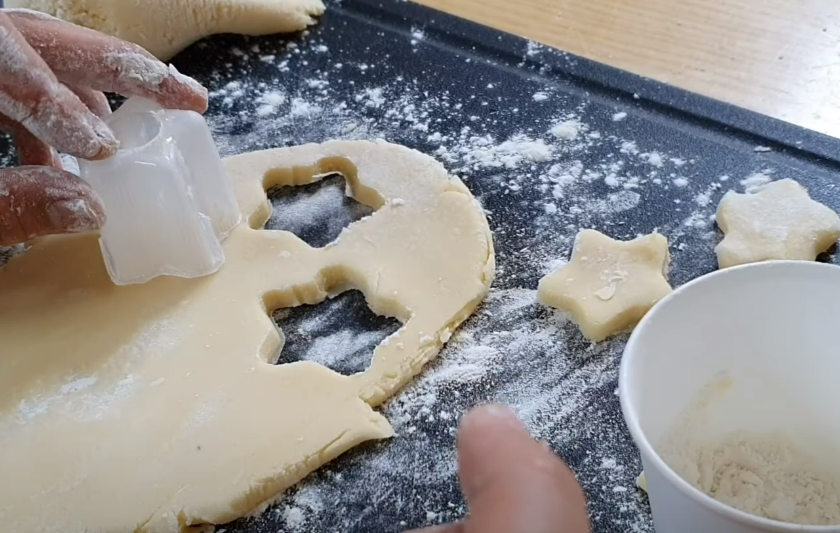 11. 모양 틀을 이용하여 반죽을 찍어줍니다.