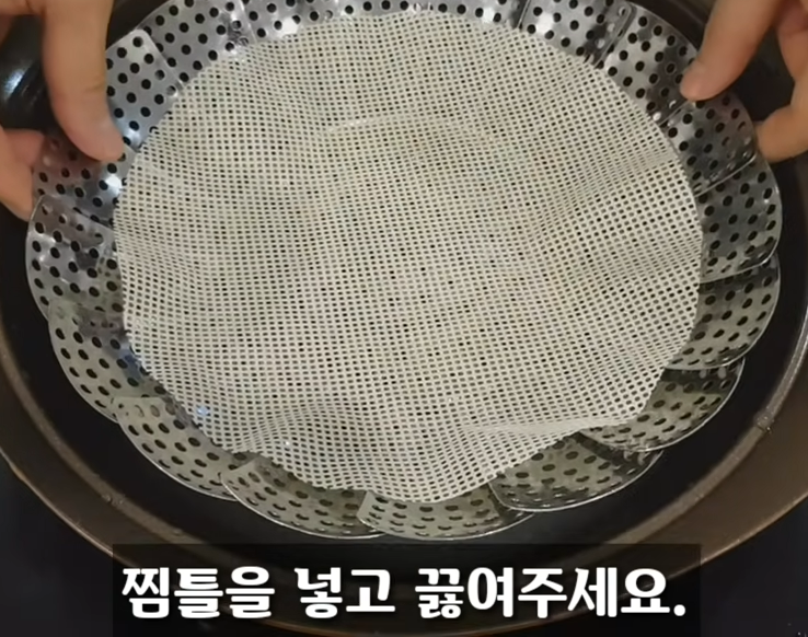 찜기나 팬에 쌀뜨물을 넣고 끓입니다.