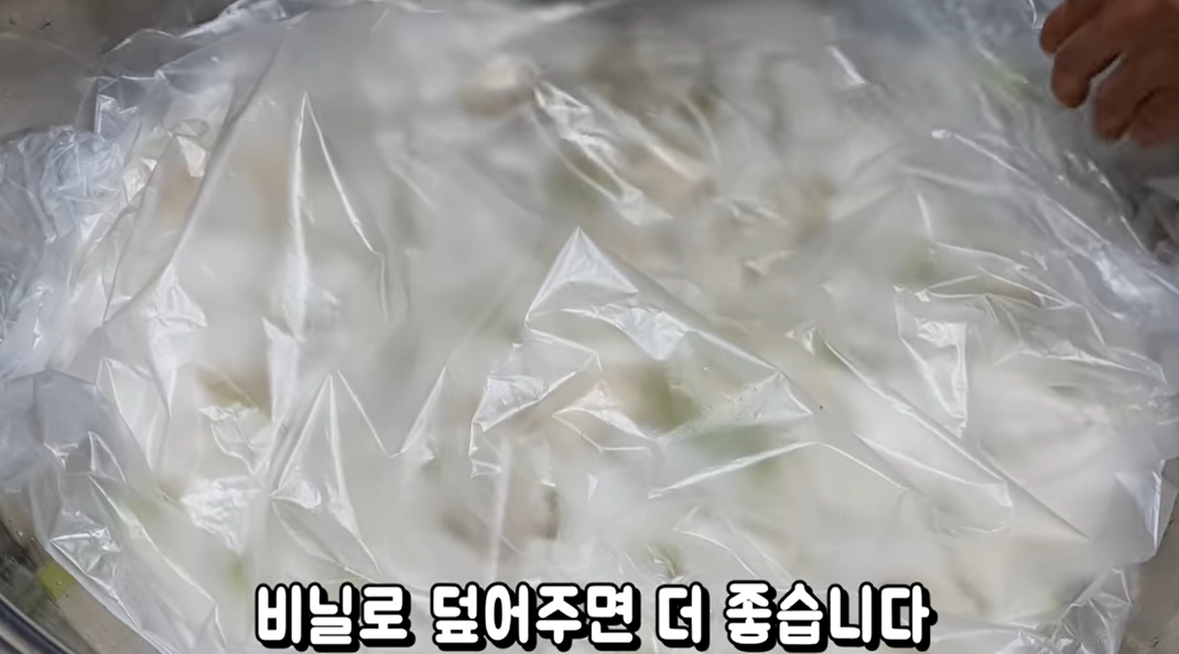 ✅ 비닐로 덮어서 2시간 반 정도 절여줍니다.