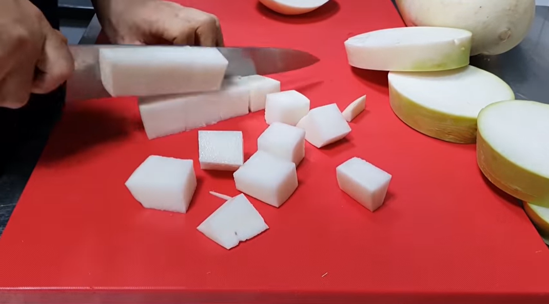 ✅ 무 2개를 먹기 좋게 썰어줍니다.