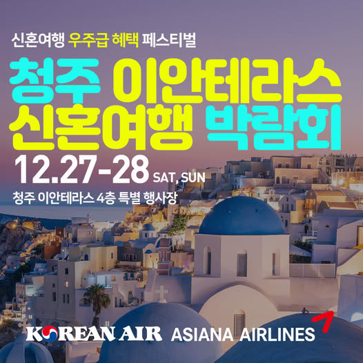 청주 이안테라스 대형 웨딩박람회 2025년 12월 27일 개최 정보 확인돼요.