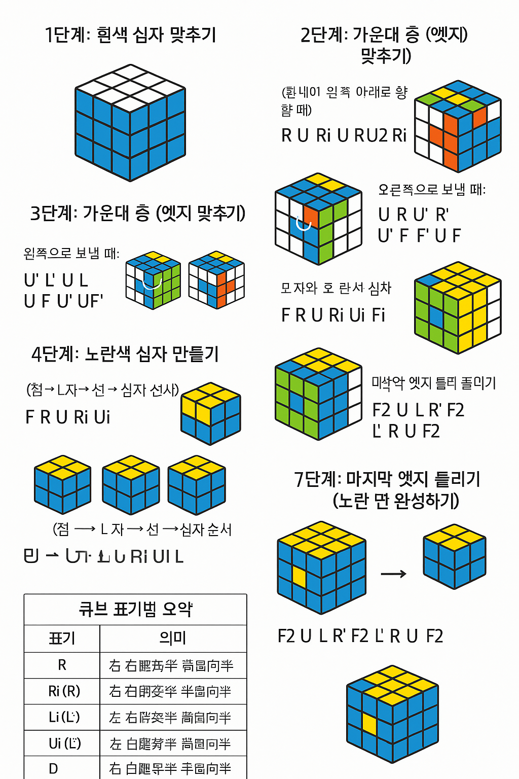 3x3 큐브 맞추는 초보자 공식 (층별 맞추기)