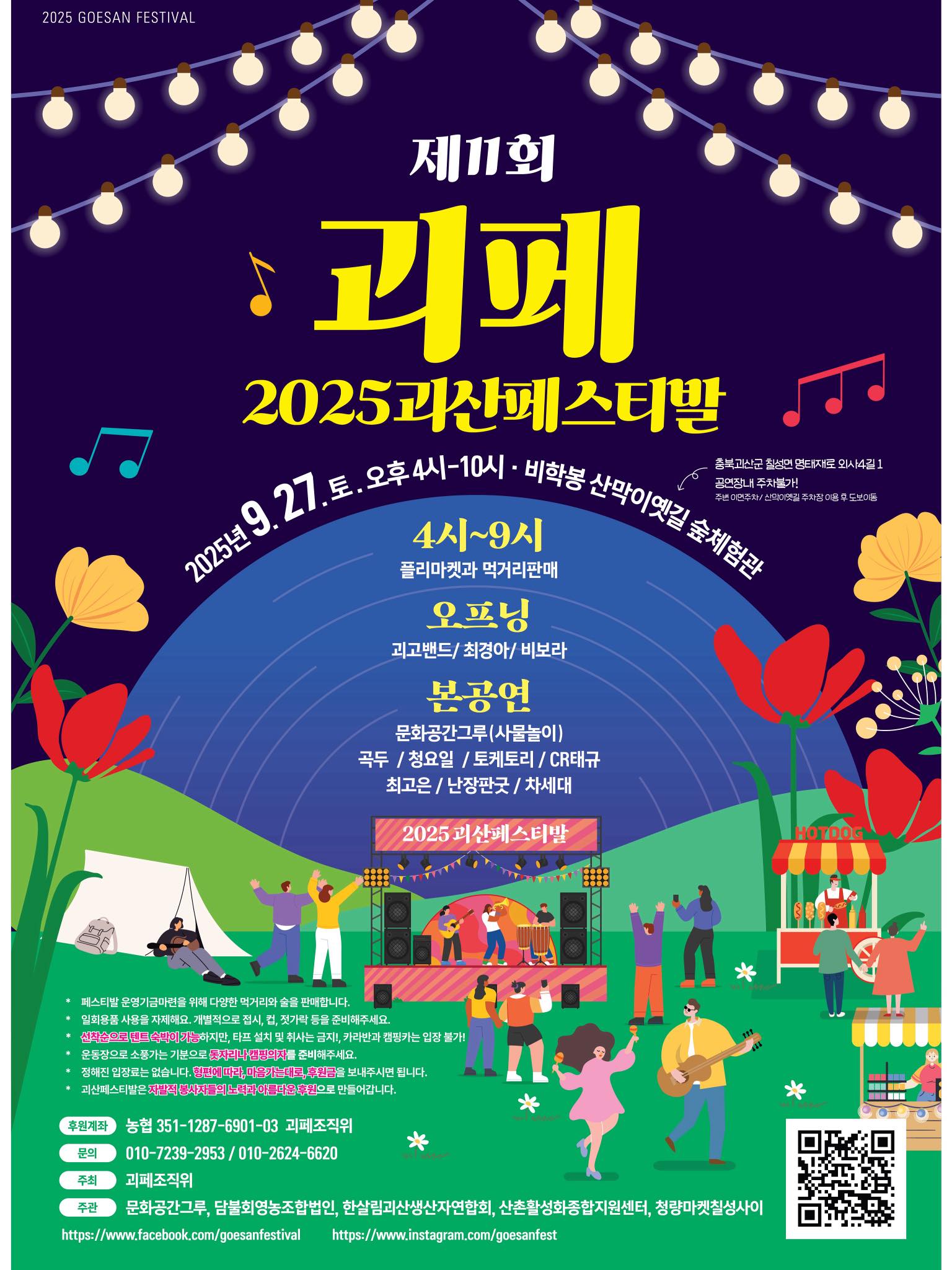 9월 27일 괴산페스티벌(“제11회 괴산페스티발”) 정보는 아래와 같아요