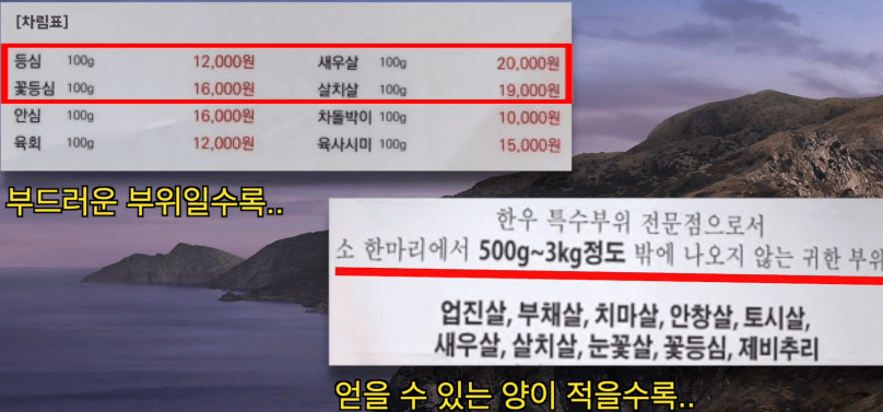100그램당 8000원이 넘는 고기에서 이 질긴 부분도 다 돈이겠죠.