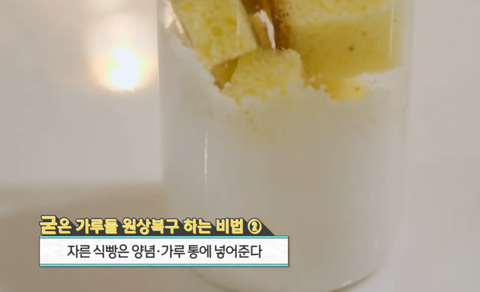 여름철 습기로 인해 굳어버린 소금, 식빵으로 되살릴 수 있습니다.