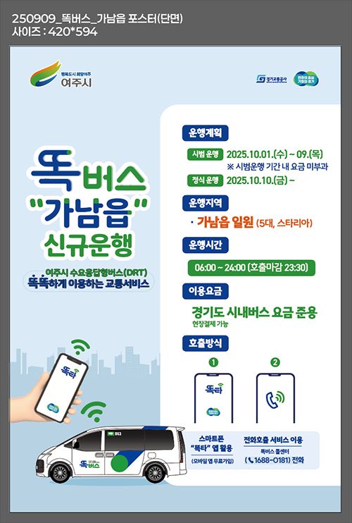 여주시는 교통 소외지역 해소를 위해 가남읍에 수요응답형 교통수단인 '똑버스'를 도입하여 10월부터 운행을 시작합니다.