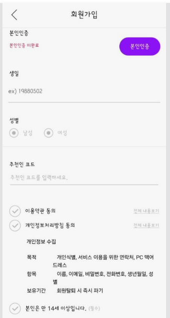 이메일 ID, 비밀번호 2번, 성함, 본인인증,