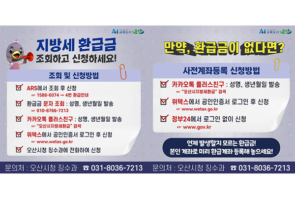 오산시 지방세 미환급금 신청 시 유의사항 안내