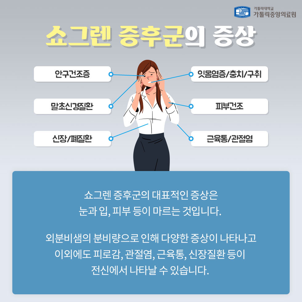 오늘은 쇼그렌 증후군에 대해 자세히 알아보도록 하겠습니다.