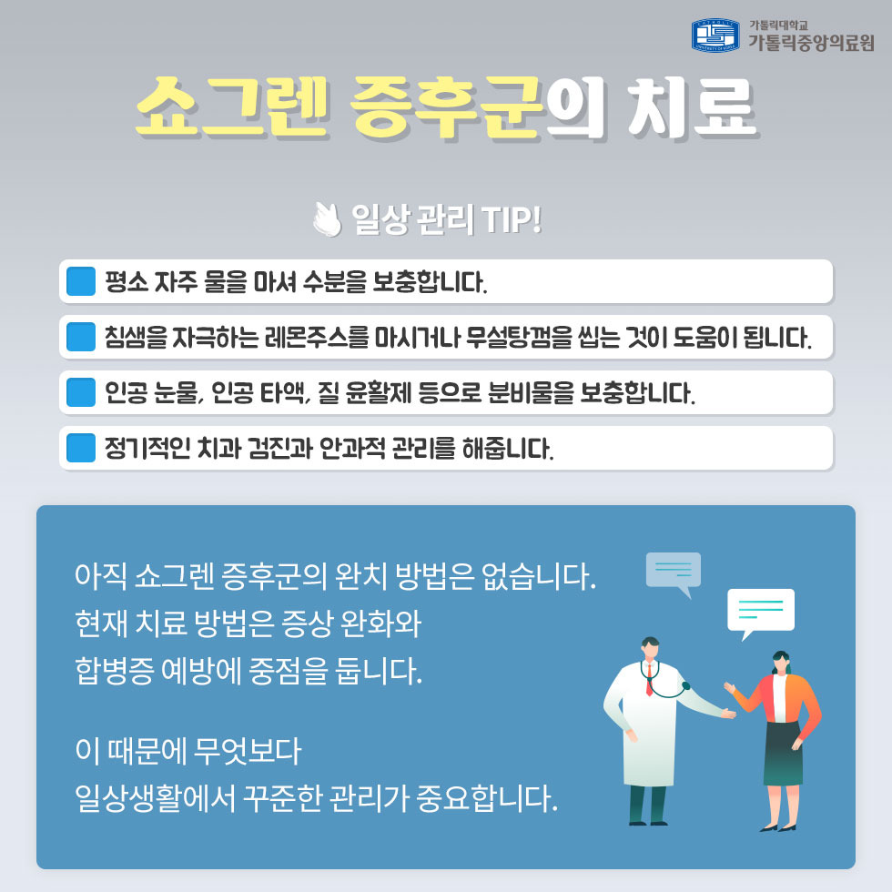 쇼그렌 증후군은 관리가 필요한 질환이지만, 적절한 치료와 생활 습관 개선을 통해 증상을 완화할 수 있습니다.
