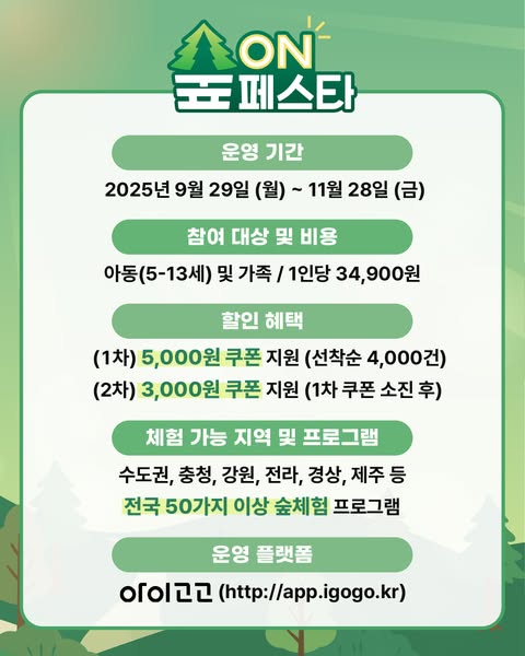 🍂 전국 50가지 이상의 숲 체험 프로그램 참여 가능