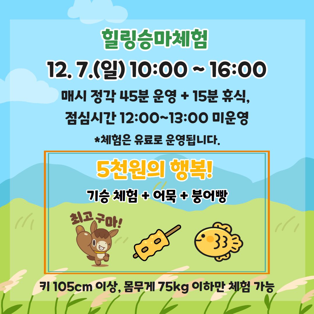 - 12월 7일: 경기 종료 후 힐링승마체험 진행
