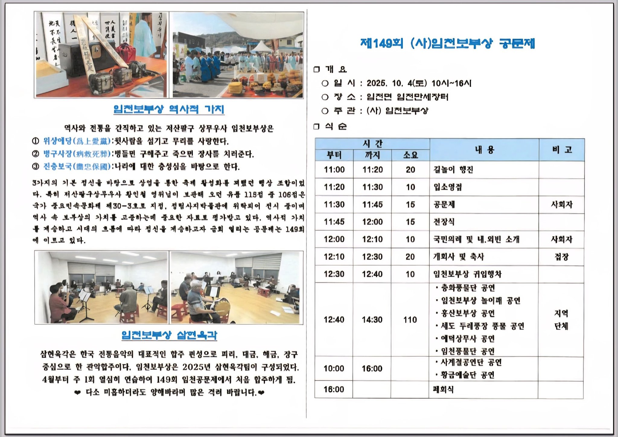 제149회 임천보부상 공문제에 여러분을 초대합니다.