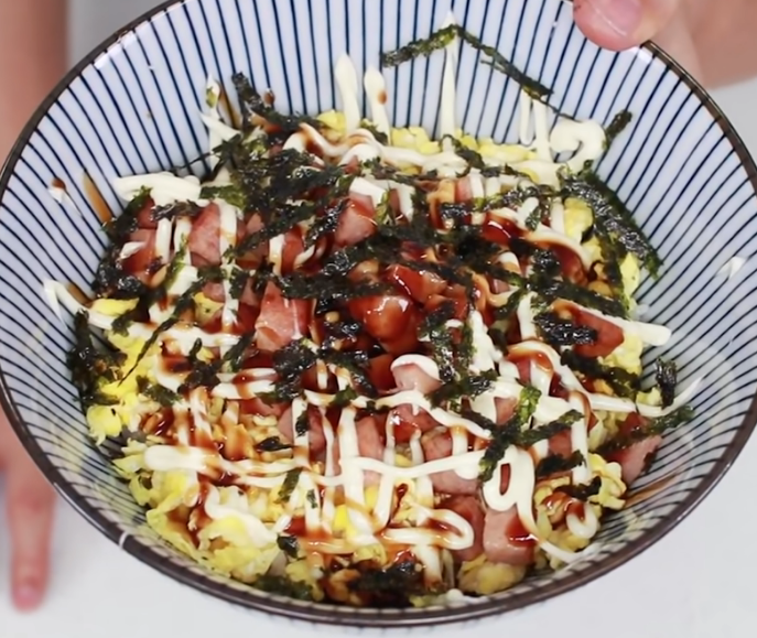 집에 김가루가 있다면 김가루도 뿌려주면 보기에도 맛있는 스팸마요덮밥이 완성됩니다.
