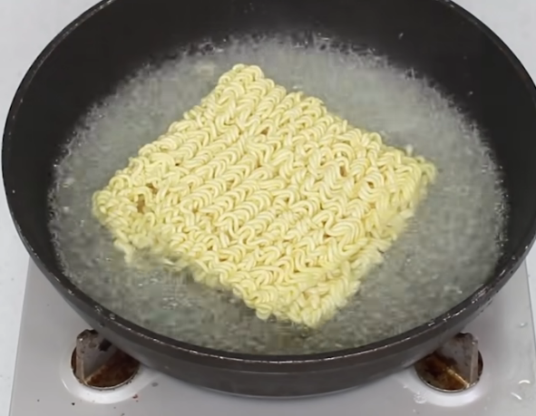 물을 많이 부을 필요없이 라면이 절반만 잠길 정도로 부은 다음에 끓여줍니다.