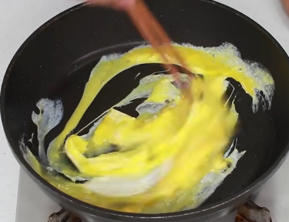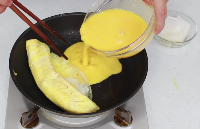 달걀말이를 할때의 팁을 말씀드리면 후라이팬에서 절반정도를 차지하는 달걀의 양만큼 사용하시면 딱 맞습니다.
