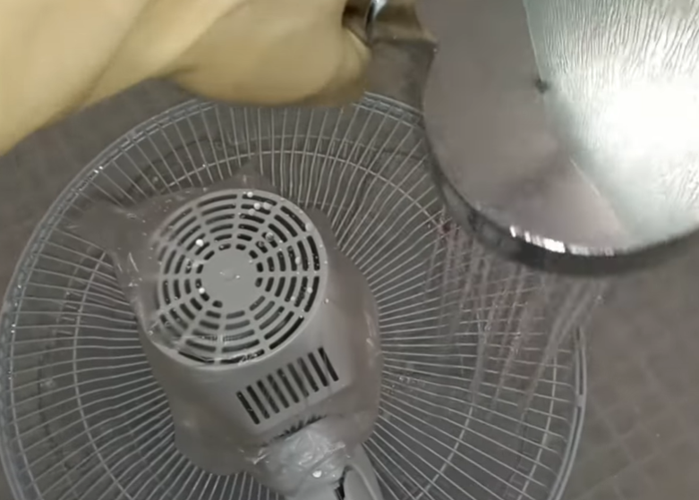 선풍기 날개와 망을 중심으로 충분히 분사시켜 줍니다.