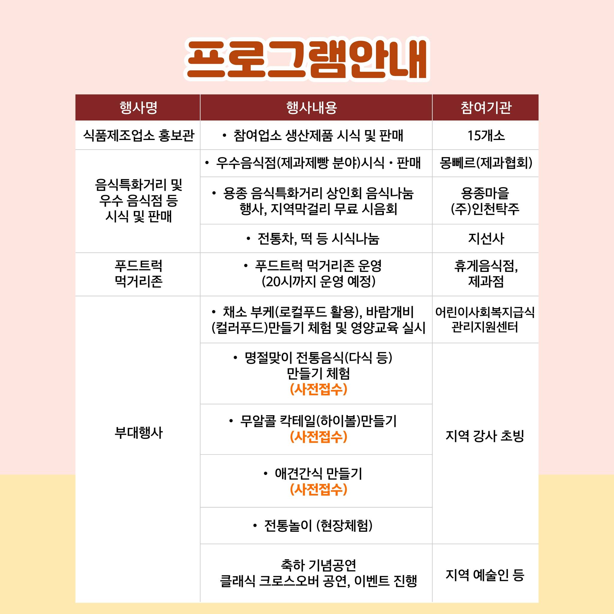 제31회 계양구민의 날을 기념하여 '식품산업육성 페스티벌'이 아래와 같이 개최됩니다: