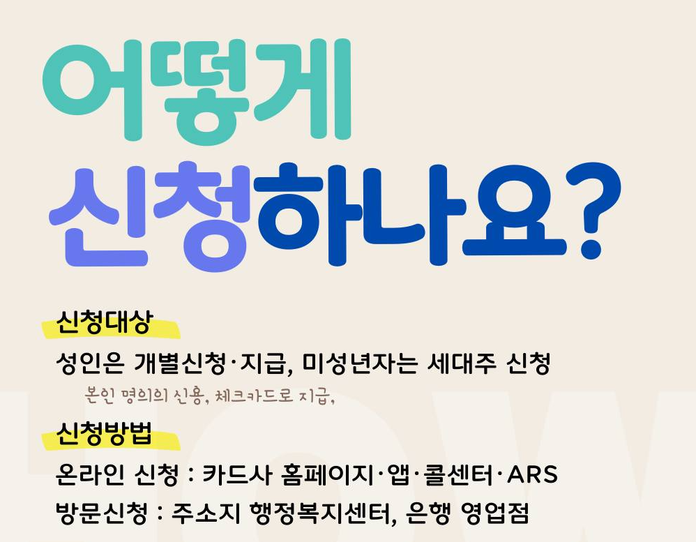 - 방문신청 : 카드사 연계은행, 주소지 행정복지센터