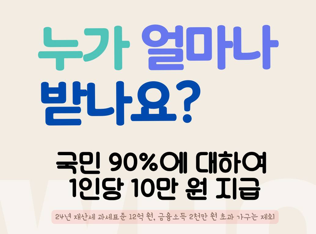 - 지원 대상: 국민 소득 하위 90%