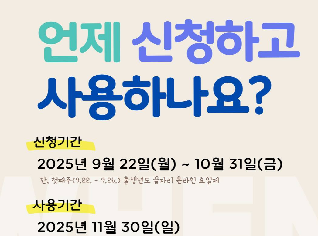 - 2025년 9얼 22일 - 10월 31일 신청 가능합니다.