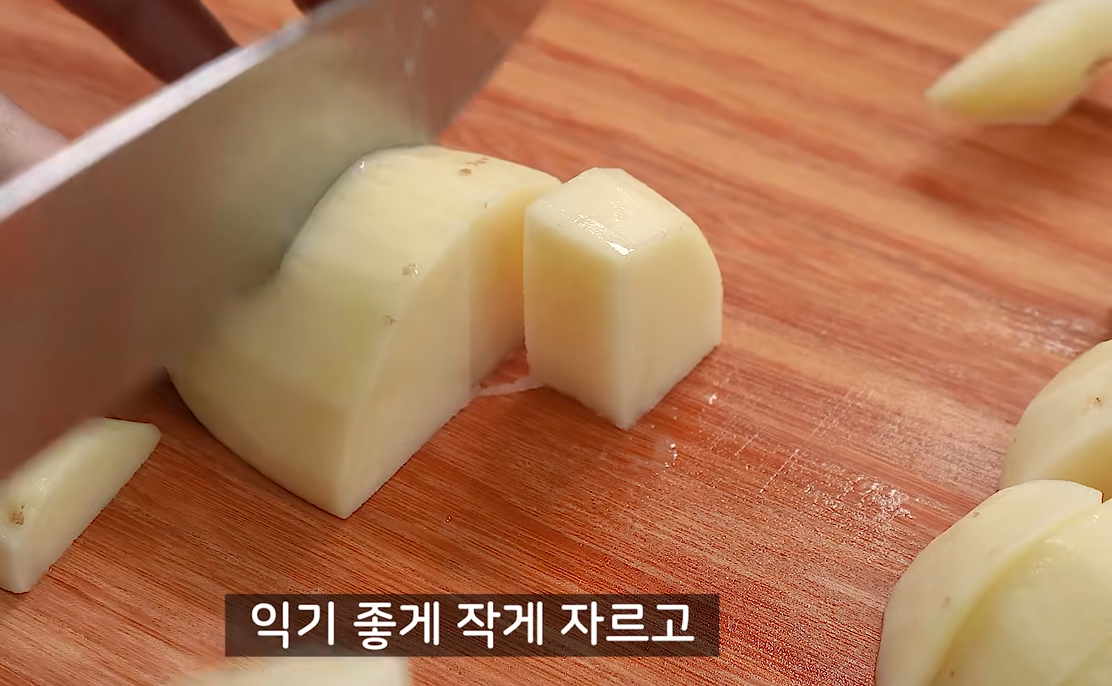 냄비에서 익힐 거기 때문에 빠르게 익을 수 있도록 적당한 사이즈로 깍뚝썰어주세요.