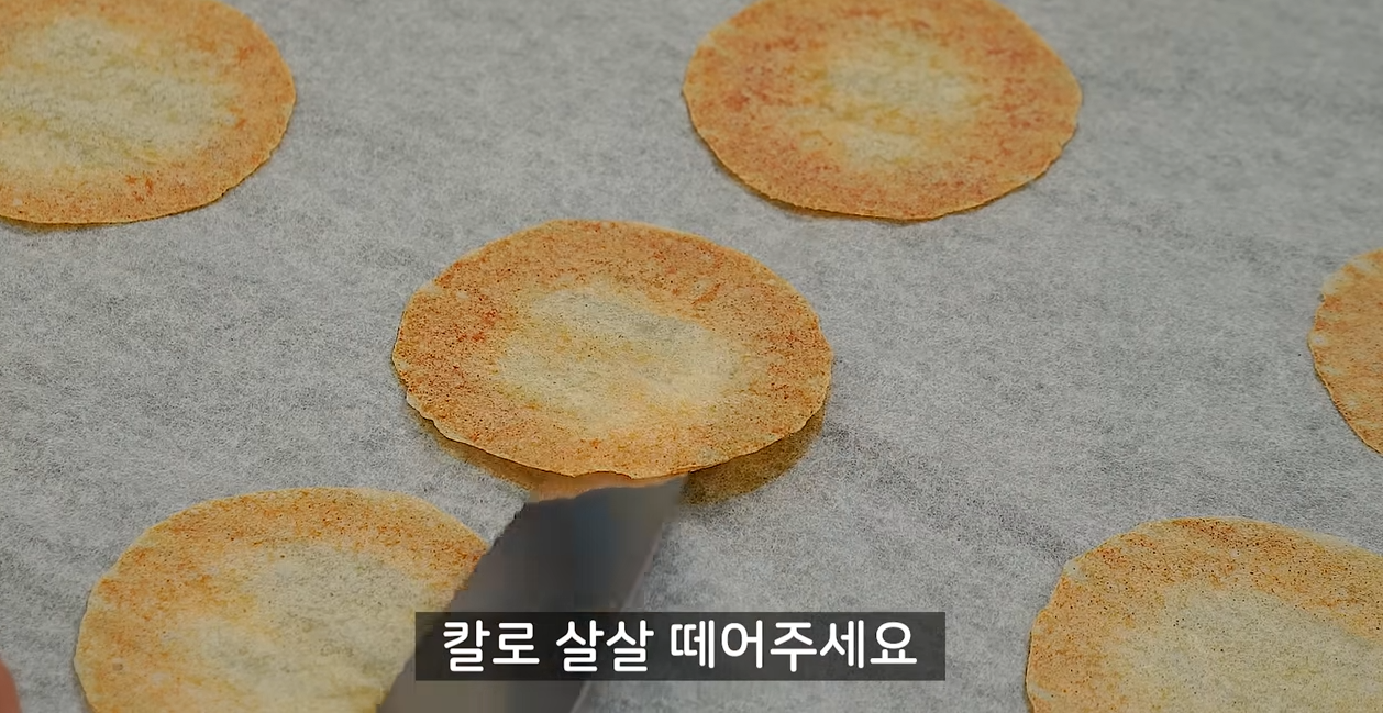 손으로 바스러질정도로 얇고 바삭하고 맛있는 양파 감자칩 완성입니다.