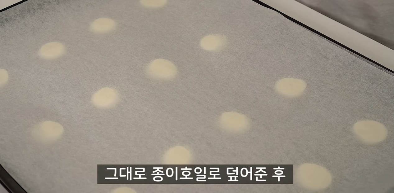 그리고 오븐 전용 쟁반에 종이 호일을 깔고 간격을 넓게 두고 적당량을 짜줍니다.