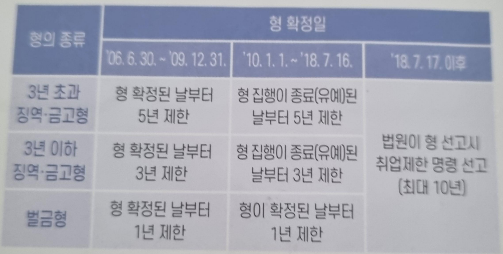 내용: 취업제한 기간중 아동, 청소년관련 기관 운영및 취업 금지