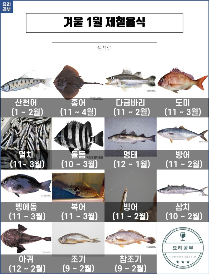 명태는 겨울철에 많이 잡히는 생선으로, 다양한 요리에 활용됩니다. 특히, 명태는 단백질이 풍부하고 저칼로리 식품으로 다이어트에도 좋습니다. 명태를 활용한 찌개나 조림은 겨울철에 따뜻한 한 끼로 제격입니다.