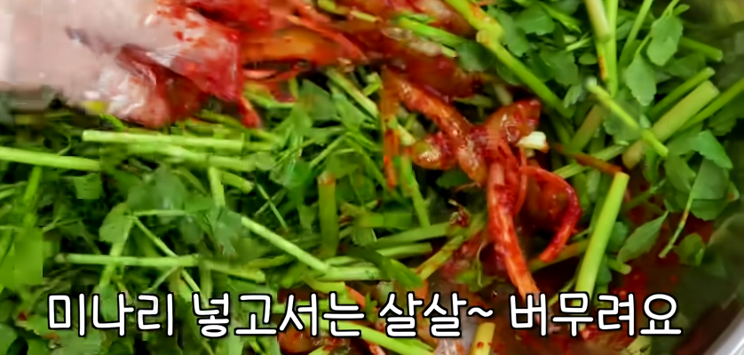 미나리는 넣고 남은 양념장과 함께 살살 버무려줍니다.