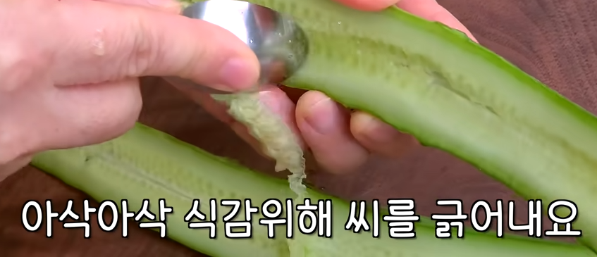 식감을 위해 숫가락으로 씨를 긁어냅니다.
