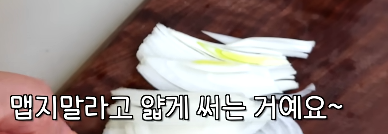 양파 20g은 질긴 겉면을 떼내고 얇게 썰어줍니다.