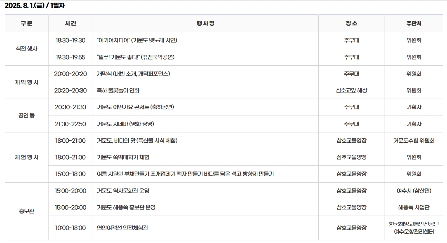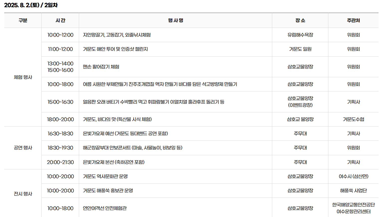 - 행사명: 제23회 거문도․백도 은빛바다 체험행사