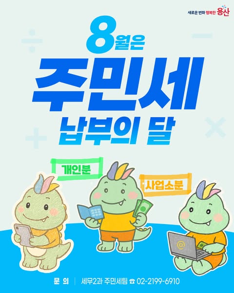 한국에서는 **8월이 ‘주민세 납부의 달’**입니다. 아래는 올해 기준 주민세 납부 및 신고 일정 요약입니다: