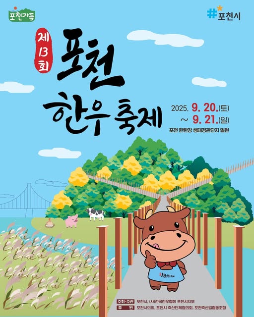 제13회 포천한우축제가 2025년 9월 20일(토)부터 21일(일)까지 이틀간 포천 한탄강 생태경관단지 일원에서 개최됩니다.