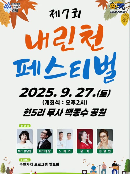 원하시면 제가 구체적으로 “제7회 내린천 페스티벌” 정보(날짜, 장소, 프로그램 등) 더 찾아드릴게요, 그렇게 할까요?