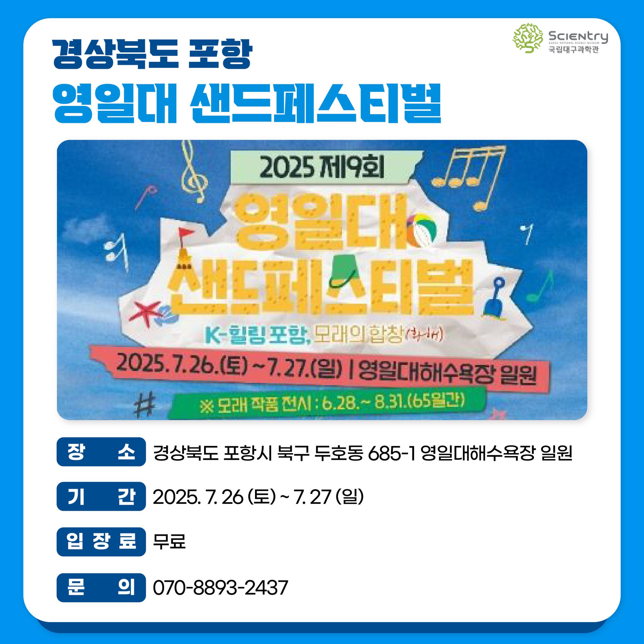 - 장소: 경북 포항시 북구 두호동, 영일대해수욕장 일대 및 시계탑 광장