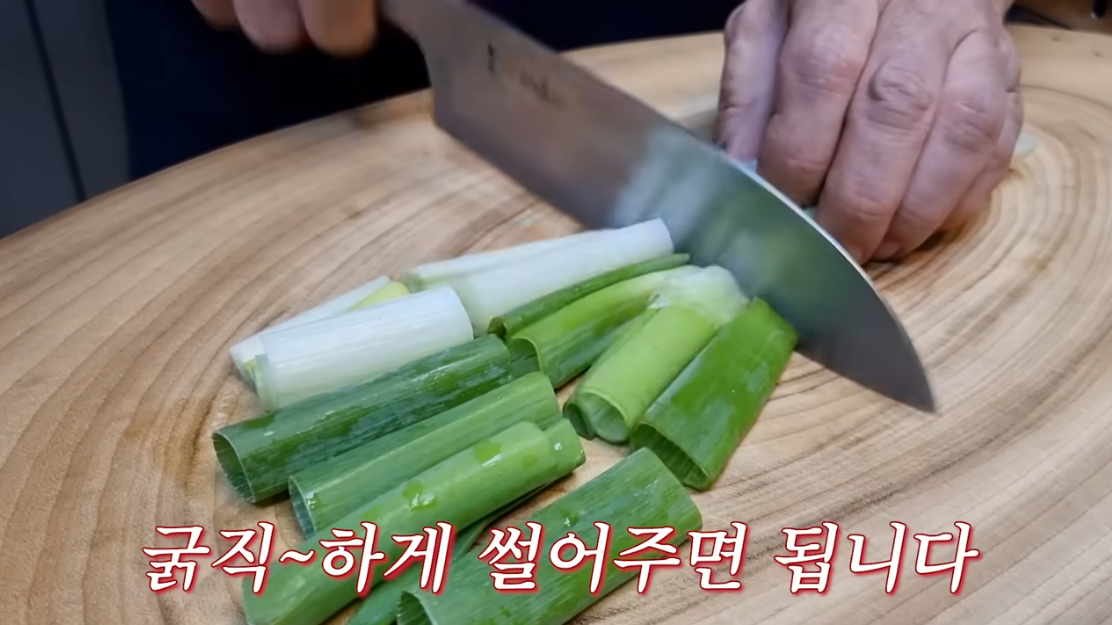 부추는 한 줌을 사용하는데 총 길이의 3등분으로 썰어줍니다.