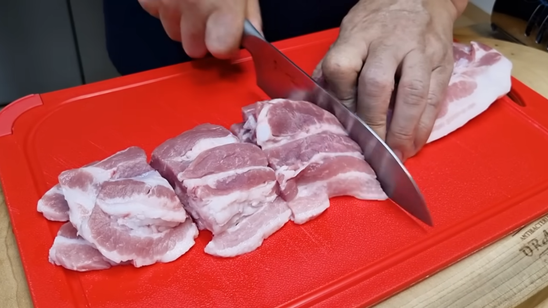삼겹살 600g을 먹기 좋은 크기로 썰어줍니다.
