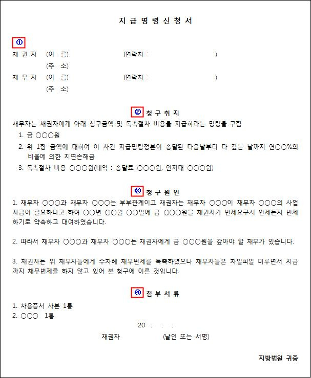 - 지급명령 신청서 작성 방법