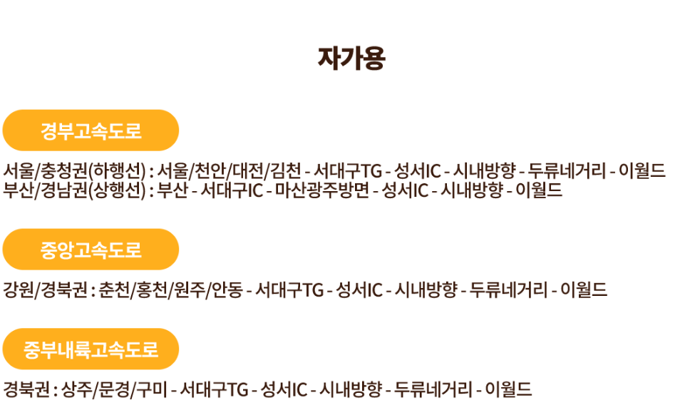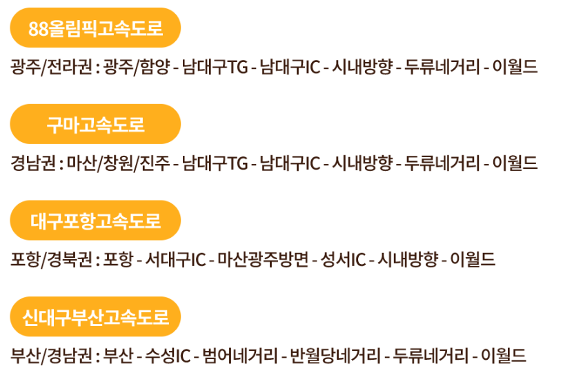 지하철2호선 : 두류역15번 출구 -> 이월드(도보5분 소요)