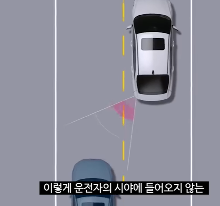 차선을 변경할 때, 사각지대에 있던 옆차량을 인지하지 못해서 사고가 많이 나죠.